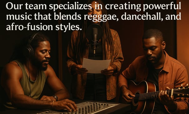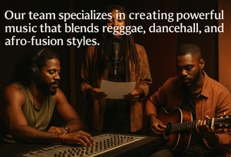 Our team specializes in creating powerful music that blends reggae, dancehall, and afro-fusion styles.
